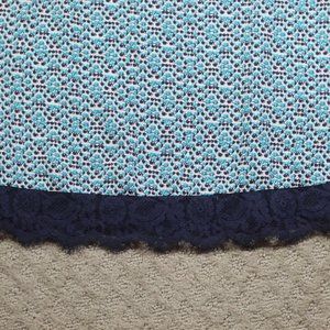 Gorgeous teal & navy blue printed top with an added touch of lace along the hem. So feminine and comfortable.
