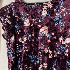 a.n.a Soft Woman’s Top with Ruffle Sleeves and Flower Designs Medium
