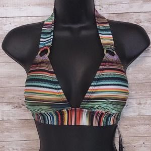 a.n.a Striped Bikini Halter Swimsuit Top Medium