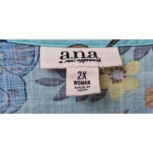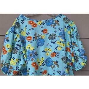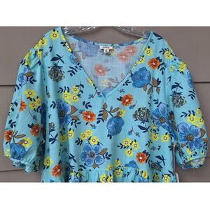 a.n.a. Tiered Short Cottage Dress 100% Cotton Floral Turquoise Blue Orange Sz 2X