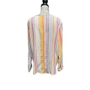 a.n.a. Tunic Top Size Lg Multicolor Stretch Keyhole Neck Pleated Colorfu…