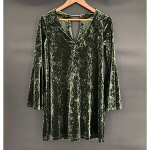 a.n.a. Velour Bell Sleeve Mini Dress XS Green
