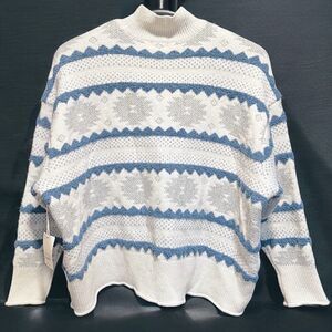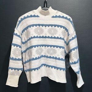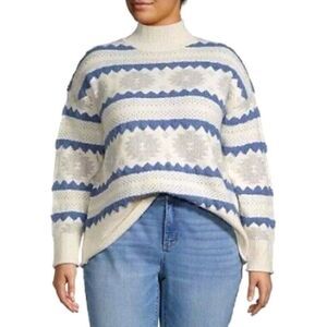 a.n.a Whisper Pattern Sweater Ivory Blue Knit Pullover Mock Neck 2X NWT