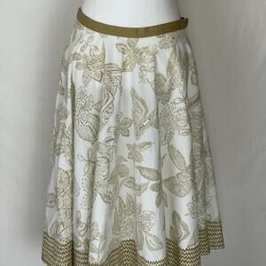 a.n.a. White Tan Pure Cotton w/Sequins Cottage Boho Circle Skirt Size 6