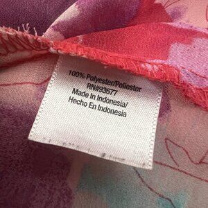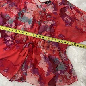 a.n.a Women Plus Size 2X Red Floral Flutter Chiffon Waist Tie V- Neck Blouse Top