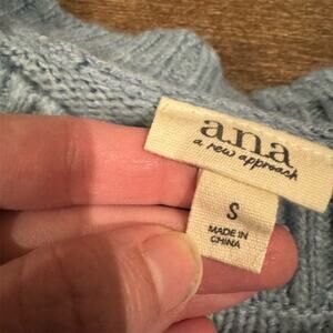 Keywords: a.n.a sweater, women's pullover, blue striped sweater, crew neck, long sleeve sweater, acrylic nylon blend, machine washable, size S, regular fit, women's fashion, pre-owned sweater.