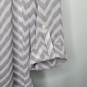 a.n.a Women's Gray & White Chevron Print Sheer Lightweight Popover Blouse Size L