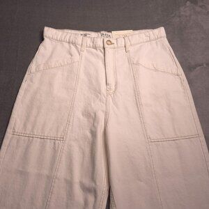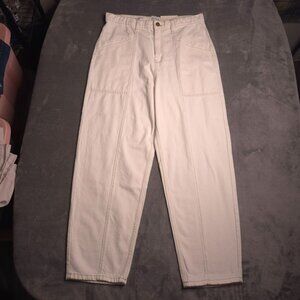ana Womens Highest Rise Barrel Jeans 14 Off White Tapered Relaxed 100% Cotton