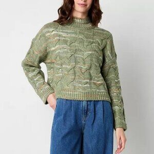 a.n.a Womens Mock Neck Long Slv Cable Knit Pullover Sweater - Green Sz XL 925270