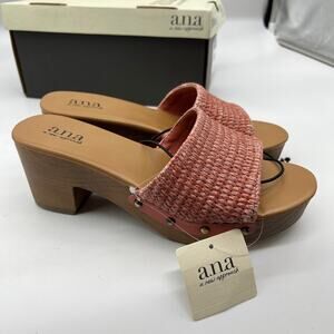 A.n.a's Robinson's mule sandals are a comfortable, water-resistant style to wear with midi dresses or jeans in warm weather. They have a framing woven strap set with bronze-tone grommets and a cushioned insole and sit on a stacked heel with a rubber sole.