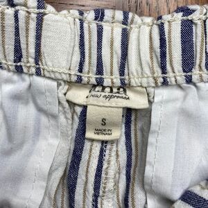 a.n.a Women's Small Linen Blend High Rise Pull-On Shorts Striped Navy Ivory