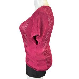 ana Womens Sweater Shirt Top Short Sleeve Loose Knit Crochet Pullover Red Large
