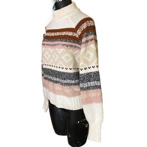 a.n.a. a new approach Cream Mock Neck Fair Isle Print Sweater Size L. Cotton-blend