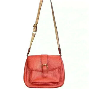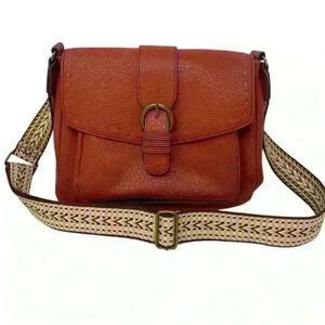 a.n.a medium PURSE W RED PEBBLED FAUX LEATHER TAN GUITAR STRAP