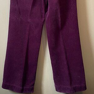 These corduroys are made up of 100% cotton. They have a fitted waistline, two pockets in back and two in front, full length wide legged. Better worn in cooler weather.