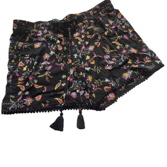 a.n.a. shorts boho small black with pink and yellow floral design elastic waist