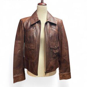 a.n.a women's brown genuine leather moto zip up jacket medium