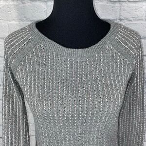a.n.a. Long sleeve sweater w/stripe stitching, grey/white sz XS