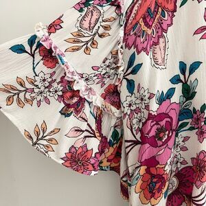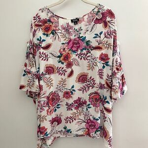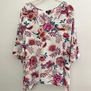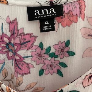 a.n.a Short Sleeve Ruffled V Neck Floral Top Size XL