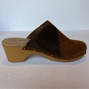 a.n.a. Women's Patchwork Leather Clogs Brown/Tan Size 7 1/2 M