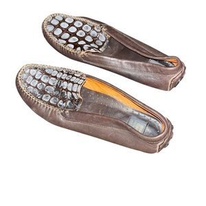 andre assous Italy leather driving loafers flats shoes brown 10 Italian