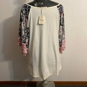 andthewhy Beige with Floral print bell sleeves tunic, size L