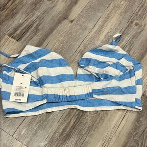 Chic camisole with blue and white stripes. Features thin straps. Ideal for casual outings.