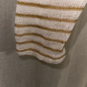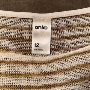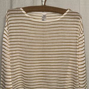 anko 10 Ivory Tan Lightweight Knit Striped Long Sleeve Cropped Sweater