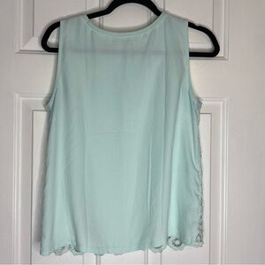 ann Taylor LOFT Tank Sleeveless Top Shirt Green Macramé Embroidered size small