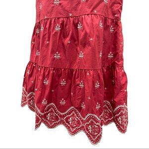 Ann Taylor scallop hem embroidered skirt. Tiered design. Gently used condition. Side zip closure. Gently used condition - with some minor loose threading. Runs big so please see measurements below.