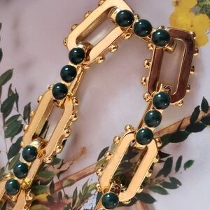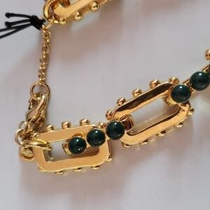 Ann Taylor nacklace. beautiful gold tone with green cabochon stones. 17" inches plus 2" extender. NWT. beautiful craftsmanship and high polished chain.