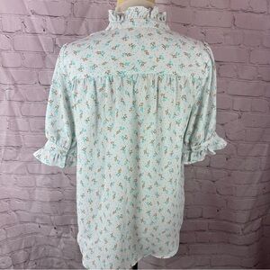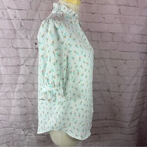 ann taylor Button Down blouse with Ruffled detail Mandarin Collar sz S floral