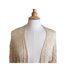 anna-kaci California Ivory/Cream Long Open Knit Cardigan Sweater, Size Small