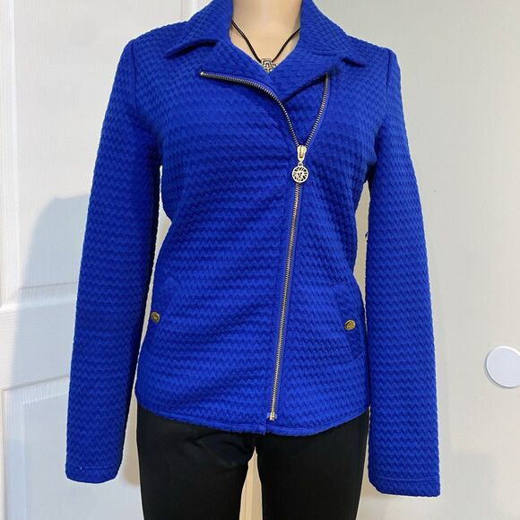 anne klein jacket womens Small royal blue with gold ziper and buttons corpcore