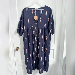 anou anou Sitting Women Elegance Buttons artsy Midi Dress New With Tag Size L