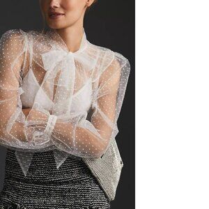 anthropologie DOLAN Sheer Tie-Neck Blouse size S new nwt