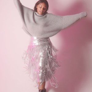 Anthropologie Maeve Tatiana Sequined Fringe Midi Skirt