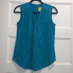 Anthropologie Maeve blue lace front sleeveless blouse size 0