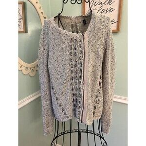 anthropologie Sweater Cable Knit Front Zip M Gray Blend Polyester. Condition is