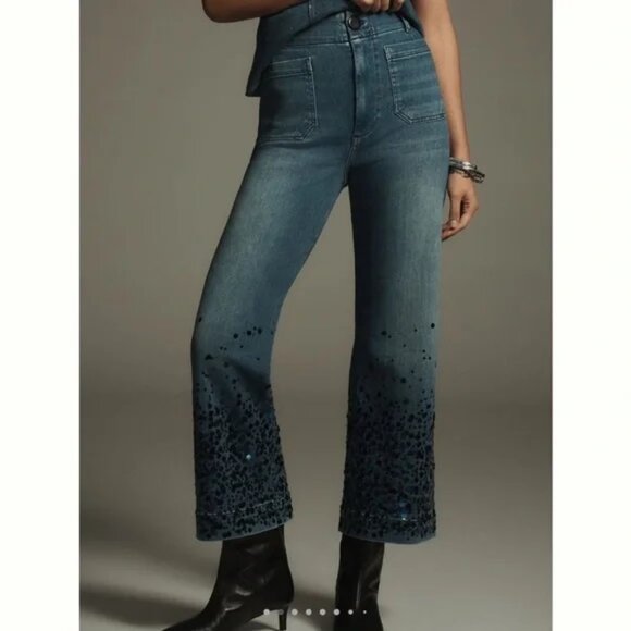 anthropologie The Colette Cropped High-Rise Wide-Leg Jeans by Maeve: Sequin 33