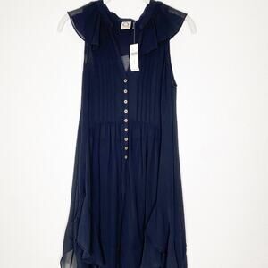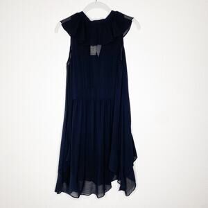 anthropologie akemi + kin navy ruffle sheer blouse tunic size xs