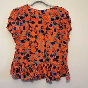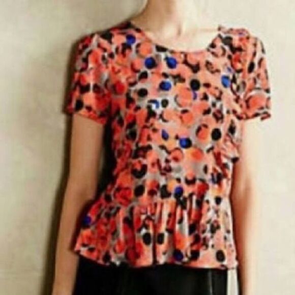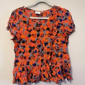 anthropologie hd in paris 100% silk polka dot ruffle short sleeve top size 10