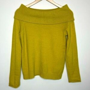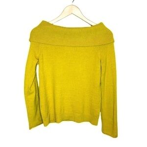 anthropologie shelby off the shoulder pullover sweater, color is like a mustard yellow. good condition no holes or stains. smoke free. fabric is fuzzy feeling on the outside