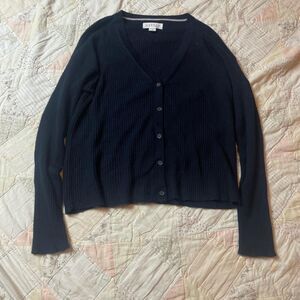 anthropologie velvet 100% cashmere navy blue sophisticated cardigan size medium