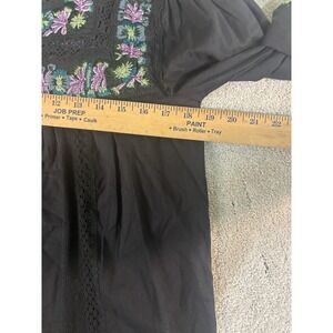 antik batik fleury blouse balck floral embroidered tie sleeve Xs