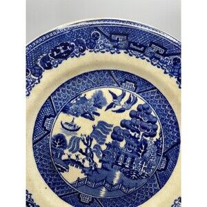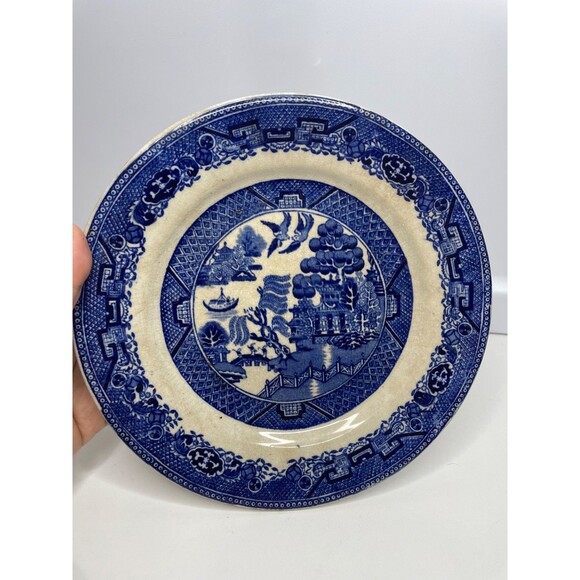antique JC Pottery England 8" Salad Plate blue willow pattern
