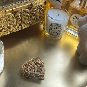antique Signed CU Gold Gilt Filigree 1.5” mini heart proposal box