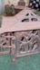 possibly around 4 to 7 inches tall, designed for a tabletop or as a small hanging decoration. The lantern is in a used, rustic condition. It is made of solid, heavy cast iron.,