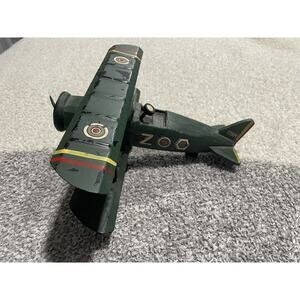 antique fighter barron plane wood body metal wings c1904 - propeller spins! vtg