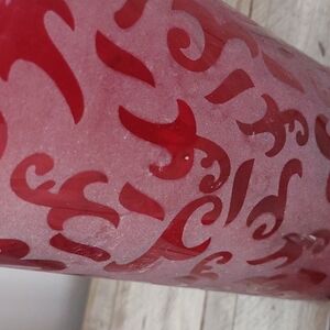 apothecary Jar Canister with Lid Red Etched Glass Shelf Decor
